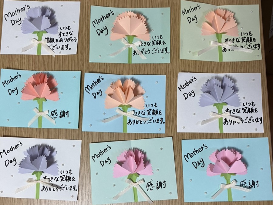 まず母の日のプレゼントです。看護師・藤田さんがつくり、女性のご利用者さま全員にプレゼントしました。