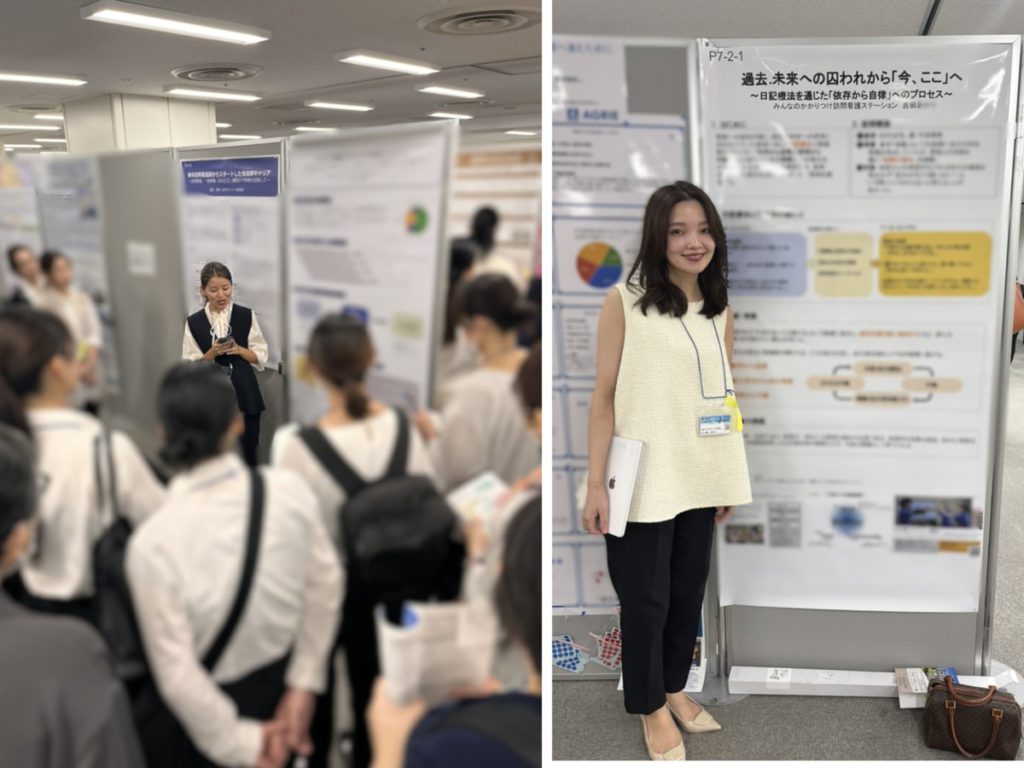 「半年以上かけて準備し、多くの方に支えられて無事に発表できました。発表中は皆さんが大きく頷きながら聴いてくださり、その真剣な眼差しに、希望を支える看護の重要性を改めて確信しました。資源が限られる在宅の場で奮闘されている仲間が全国にいるという実感はとても頼もしく、日々実践している看護が共有され、さらに進化していく未来を願っています。」