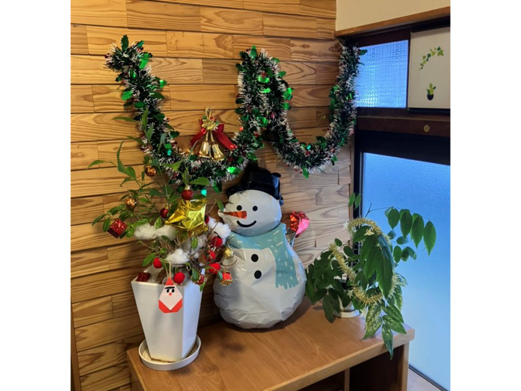 鵜沼・蘇原店では外出が難しいご利用者さまにも季節を感じていただき、日常生活に彩りを添えられるよう季節ごとにイベントを企画しています。今回は、クリスマスのイベントです。