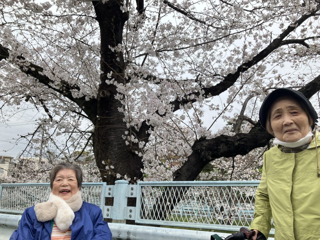 先日、昨年にに引き続きお二人のご利用者さまとお花見散歩に行ってきました。なんと今年で4回目でした。